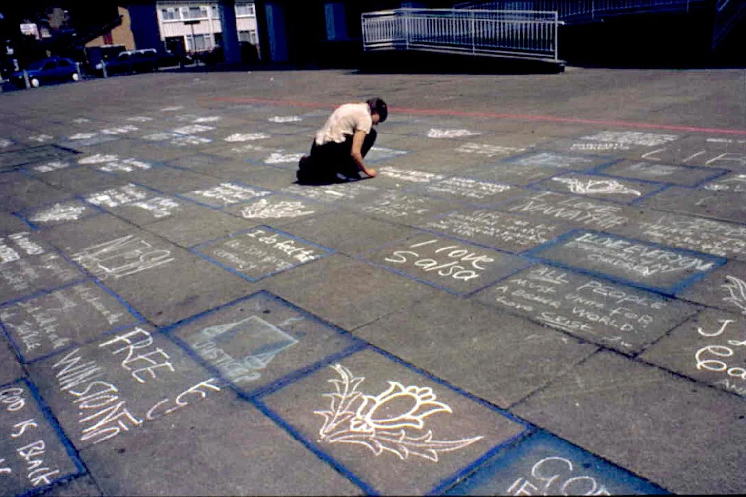 The result was an evolving piece of many comments which was continually eroded by the passage of feet or washed away by rain- some survived a little longer, some did not.