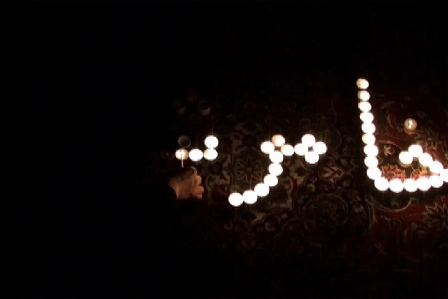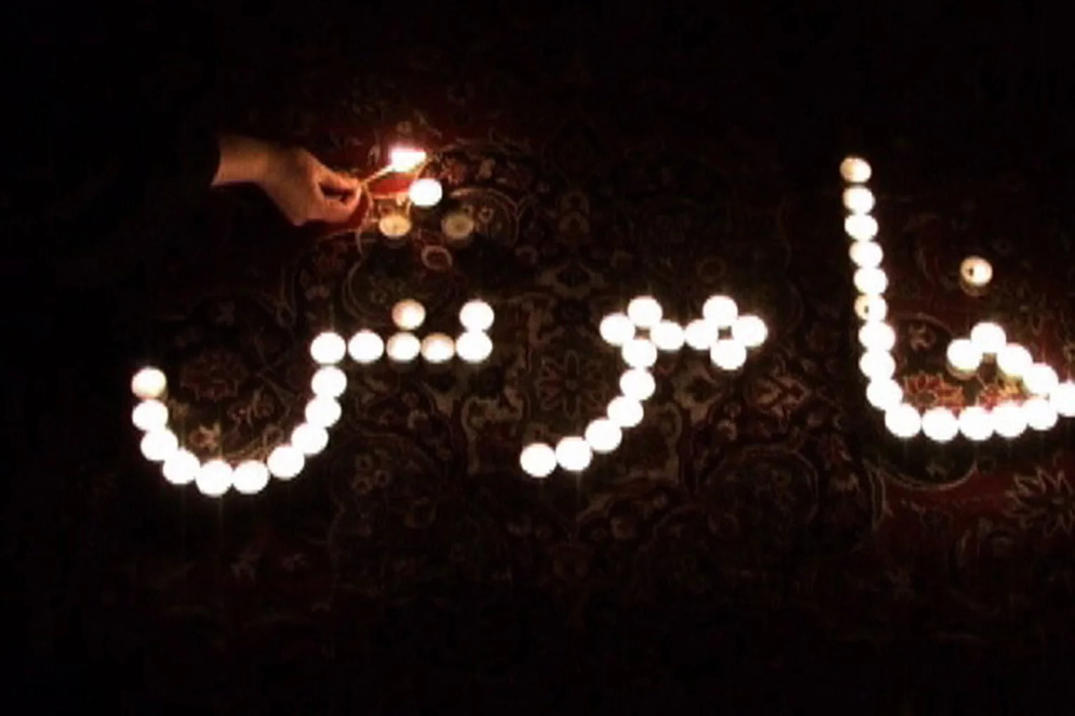 Khamoosh means unlit, silent, dead. Lighting the candles laid out in the shape of the word, the work defies it’s meaning and power to silence.